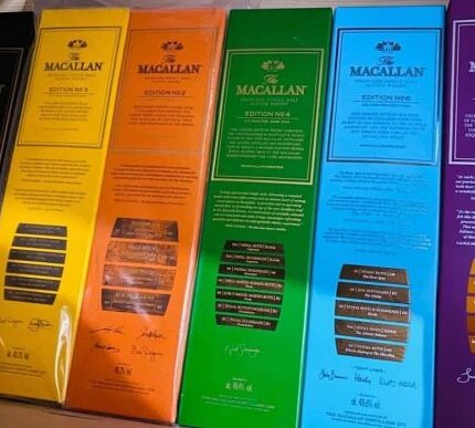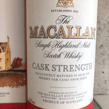 Macallan 10-Year-Old 100 Proof. A beautifully colored and intensely flavored sherry cask matured whisky from Macallan. Aged for 10 years in sherry wood, it’s bottled at 100 UK proof (57%) for more oomph. A much-missed classic. A bottle of The Macallan 18-Year-Old Single Highland Malt Scotch Whisky. This was distilled in 1970, matured in sherry casks, and bottled in 1988.