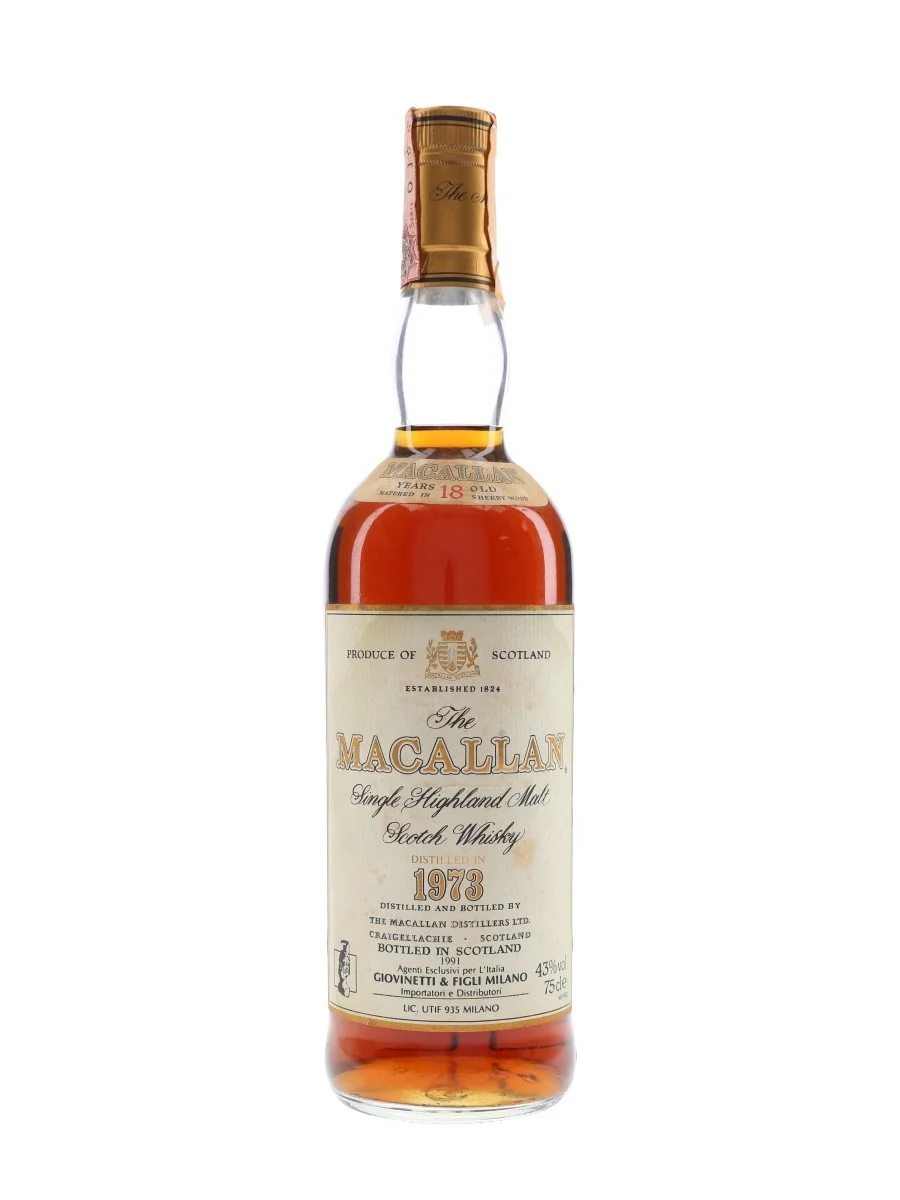 A vintage Macallan 18 Year Old Sherry distilled in 1970 and bottled in 1988 for the Italian market. (Giovinetti & Figli import)