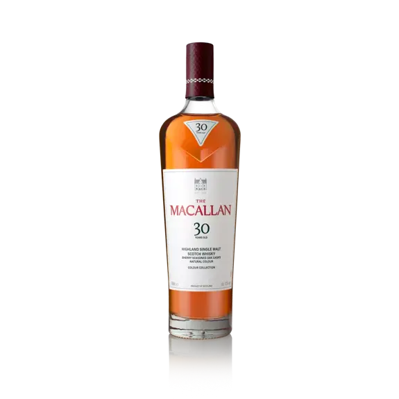 Macallan Colour Collection 30 Year Old. The Collection is a celebration of The Macallan’s commitment to Natural Colour and Sherry Seasoning. The Colour Collection 30 Years Old has undergone maturation in American oak casks, beautifully accompanied by a delicate touch of European oak.